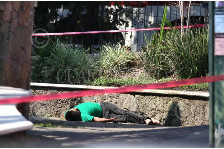 CUERNAVACA, MORELOS, 30ABRIL2024.- Un hombre fue asesinado esta mañana a los pies del monumento a la Madre, en el centro de la ciudad. Presuntamente el hombre que vivía en situación de calle riño con otro que le quito la vida. En la imagen unos pasajeros de una ruta del autotransporte observan la escena del crimen. FOTO MARGARITO PÉREZ RETANA/CUARTOSCURO.COM