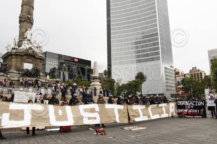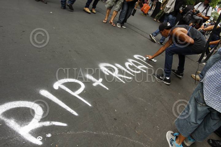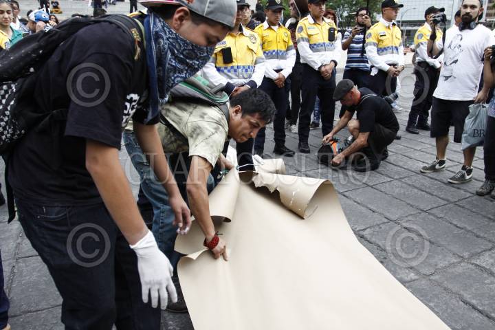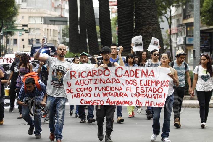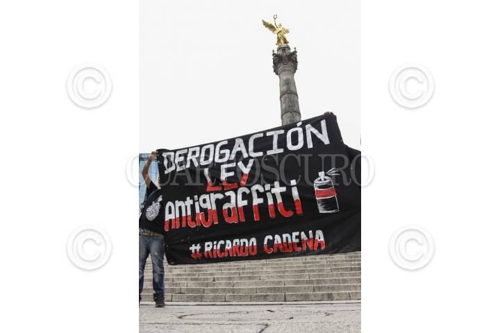 MÉXICO, D.F., 09MAYO2015.- Jóvenes graffiteros marcharon del metro Sevilla al Ángel de la Independencia para protestar y exigir justicia por la muerte de Ricardo Cadena por realizar pintas en Cholula, Puebla así como en contra de la Ley Bala y Ley Antigrafffiti las cuales criminalizan a la juventud. FOTO: RODOLFO ANGULO /CUARTOSCURO.COM