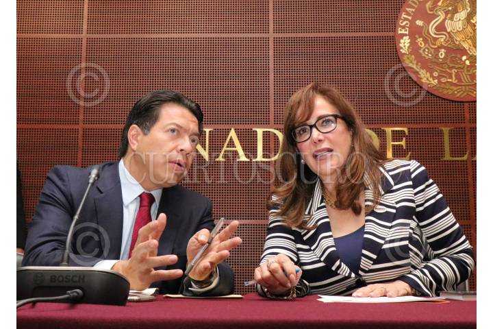 CIUDAD DE MÉXICO, 14JUNIO2019.- Mario Delgado Carrillo, diputado federal, encabezó la reunión de coordinadores parlamentarios de izquierda, que se lleva a cabo en el Senado de la República, con el fin de expresar su opinión en torno al Plan Nacional de Desarrollo. En este encuentro acudió Yeidckol Polevnsky, presidenta nacional de Morena. FOTO: CUARTOSCURO.COM