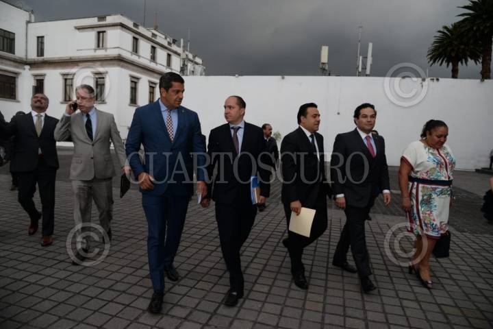 CIUDAD DE MÉXICO, 14JUNIO2019.- Mario Delgado Carrillo, diputado federal, encabezó la reunión de coordinadores parlamentarios de izquierda, que se lleva a cabo en el Senado de la República, con el fin de expresar su opinión en torno al Plan Nacional de Desarrollo. En este encuentro acudieron el presidente de la Cámara de Diputados, Porfirio Muñoz Ledo; la presidenta del partido Morena a nivel nacional, Yeidckol Polevnsky, presidenta nacional de Morena y el subsecretario de Gobernación, Ricardo Peralta Saucedo. FOTO: CUARTOSCURO.COM