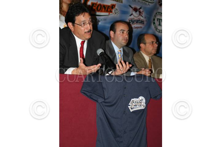 MÉXICO .D.F 13MARZO2007.- El manager del equipo "Rieleros" de Aguascalientes, Eddy Díaz, junto a directivos presentaron la nueva formación del equipo para la temporada 2007. FOTO:GUILLERMO MARTÍNEZ/CUARTOSCURO.COM