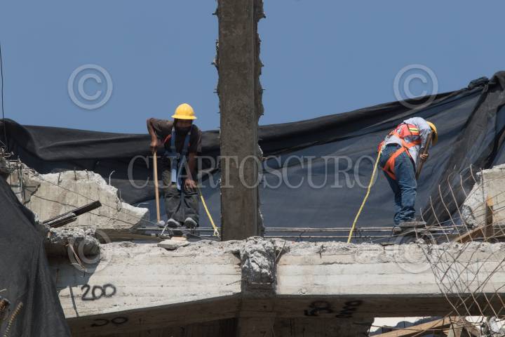 Obreros demuelen a martillazo limpio el edificio que alguna vez albergó la tienda Viena, en avenida Insurgentes y Puente de Alvarado.