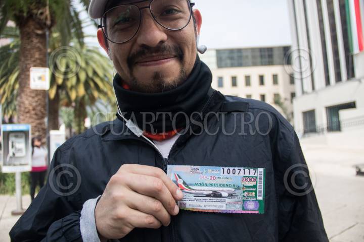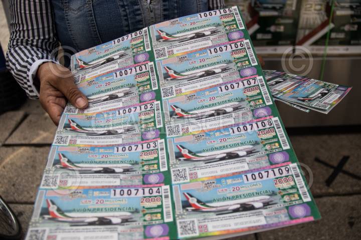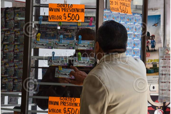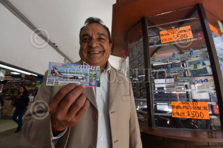 Compra de boletos del Gran Sorteo del Avión Presidencial organizado por la Lotería Nacional.