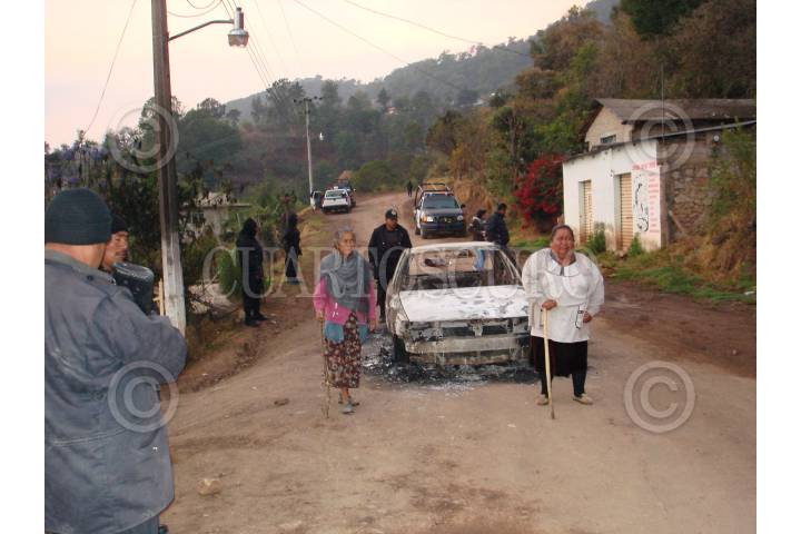 OAXACA, OAXACA 06MAYO2008.-Esta tarde en conferencia de prensa, familiares de las victimas asesinadas el pasado fin de semana, temen por su integridad y se alojan en Oaxaca desde el domingo. Un conflicto agrario entre Chalcatongo de Hidalgo, Tlaxiaco y esta población, provocó el sádico homicidio de tres personas, presuntamente por órdenes del ex presidente municipal Fredy Eucario Morales Arias, debido a un añejo conflicto agrario, el pasado fin de semana dos personas fueron asesinadas y una más quemada viva dentro de un taxi del sitio "Yundutia", presuntamente por órdenes del ex presidente de Santo Domingo Ixcatlán, Fredy Eucario Morales Arias. Segun las investigaciones policiacas se presume que el taxista Gustavo Castañeda Martínez fue roseado con gasolina y quemado vivo dentro de su vehículo; Inocencio Medina Bernabé fue asesinado con un rifle de asalto AK-47, conocido como "cuerno de chivo" y a Melesio Martínez Robles le cercenaron los genitales y las extremidades inferiores. FOTO: MAX NUÑEZ/CUARTOSCURO.COM