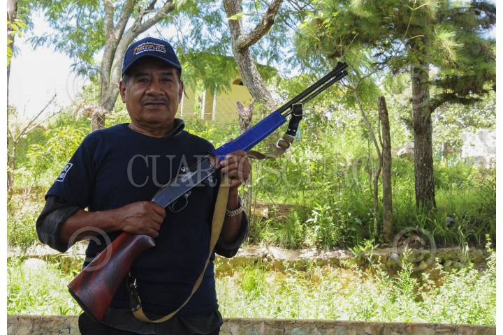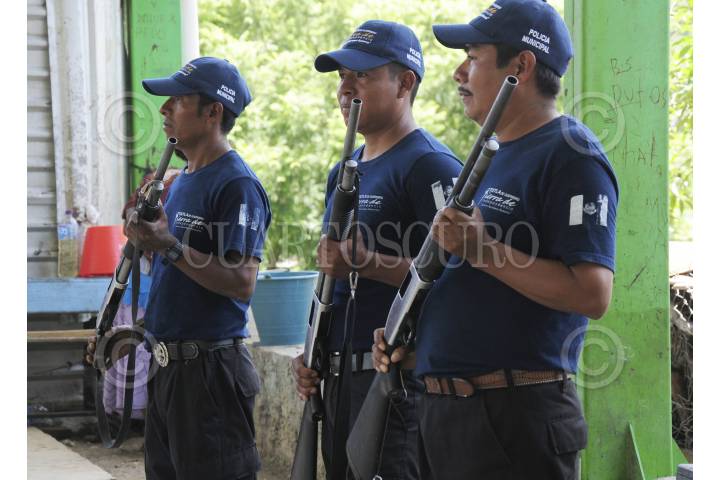 TIXTLA, GUERRERO, 28JULIO2014.- Un grupo de 20 policías rurales que ha creado el gobierno municipal y que brinda seguridad en las comunidades Nahuas del Durazno, La Estacada y el Potrero, recibieron cinco escopetas calibre 12 de manos del director de seguridad publica Rubén Reyes Zepeda, quien reconoció que estas comunidades están muy aparatadas de la cabecera municipal, por lo que en caso de un llamado de auxilio de la ciudadanía su respuesta no sería tan rápida, necesitando una fuerza rural que atienda rápido el llamado. FOTO: JOSÉ I. HERNÁNDEZ /CUARTOSCURO.COM