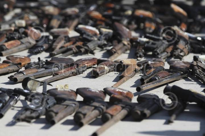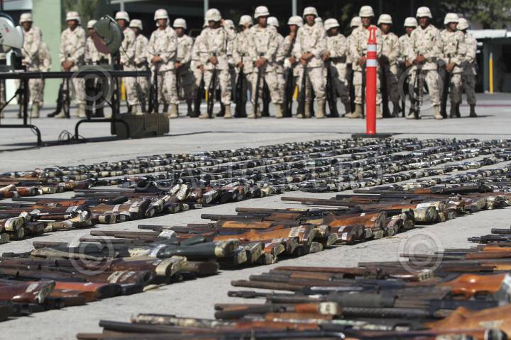 CULIACÁN, SINALOA, 16AGOSTO2016.- Como parte de las acciones realizadas por el Gobierno Federal a fin de lograr un ¨México en Paz¨ se llevo acabo la destrucción de armamento y municiones decomisados por la Secretaría de Defensa Nacional en la explanada del 94/o batallón de infantería. Un total de 19 mil 640 armas a nivel nacional serán destruidas de las cuales 5 mil 204 pertenecen a la Novena Zona Militar. El evento fue encabezado por el Gobernador Mario López Valdez y altos mandos militares. FOTO: RASHIDE FRIAS /CUARTOSCURO.COM