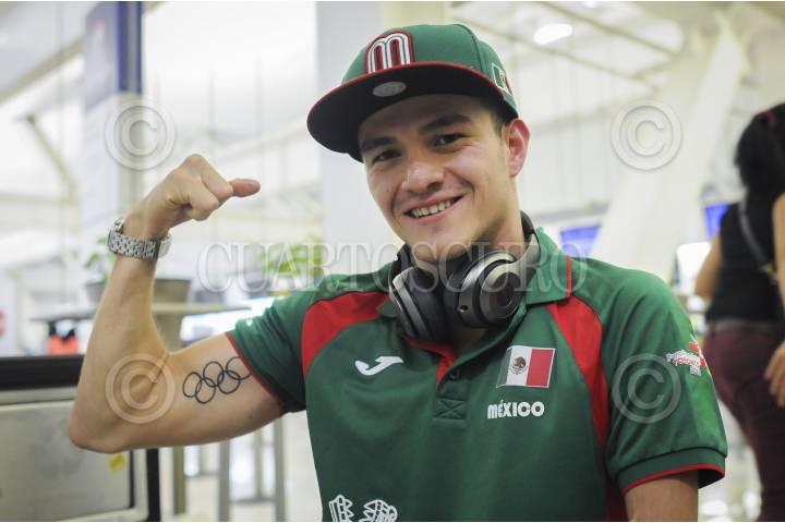 CIUDAD DE MÉXICO, 27AGOSTO2016.- El nadador multimedallista Gustavo Sánchez llegó a la terminal 1 del Aeropuerto capitalino, para partir con rumbo a los Juegos Paralímpicos de Río 2016 en Brasil, en los que participará para buscar ganar alguna medalla. FOTO: DIEGO SIMÓN SÁNCHEZ /CUARTOSCURO.COM
