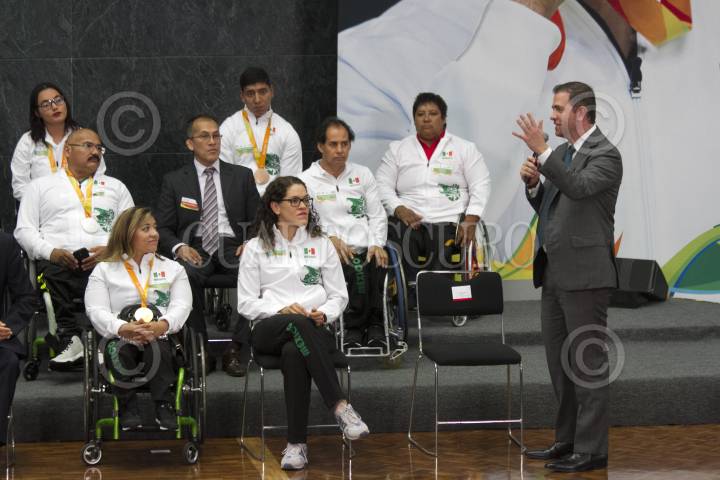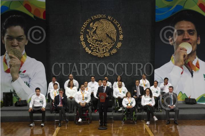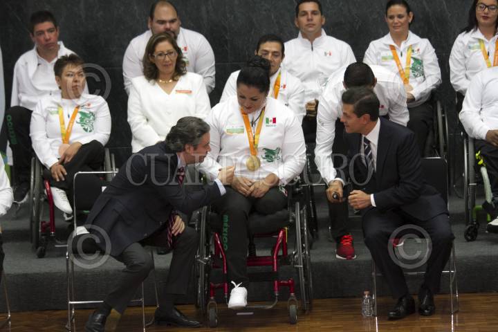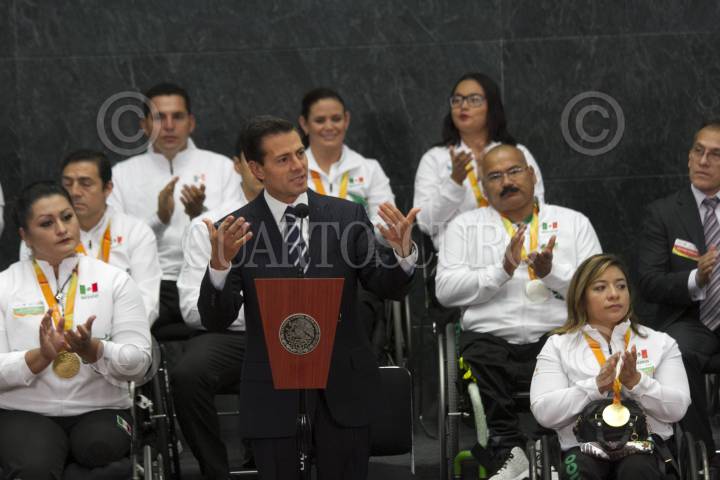 CIUDAD DE MÉXICO, 27SEPTIEMBRE2016.- El Presidente de la República Enrique Peña Nieto se reunió con la delegación que participó en los juegos paralímpicos "Río 2016", esta delegación ganó 15 medallas en esta edición y le exigieron se impulse y apoye más al deporte adaptado. FOTO: MOISÉS PABLO /CUARTOSCURO.COM