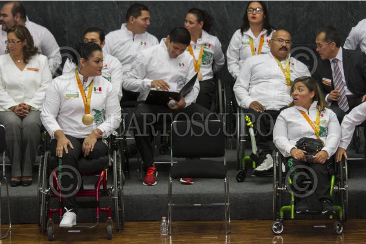 CIUDAD DE MÉXICO, 27SEPTIEMBRE2016.- Las medallistas de oro Ángeles Ortiz y Amalia Pérez durante la reunión que sostuvó la delegación mexicana que participo en los juegos paralímpicos en "Río 2016" con el Jefe del Ejecutivo, Enrique Peña Nieto, en la residencia oficial de Los Pinos. FOTO: MOISÉS PABLO /CUARTOSCURO.COM