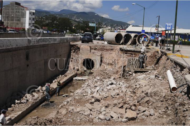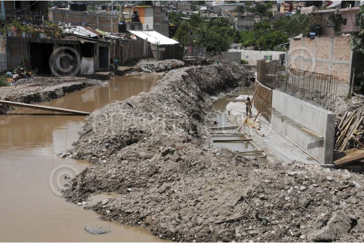 CHILPANCINGO, GUERRERO, 16OCTUBRE2013.- Imágenes de trabajos de reparación de la red de drenaje en la lateral del Río Huacapa. FOTO: JOSÉ I. HERNÁNDEZ /CUARTOSCURO.COM