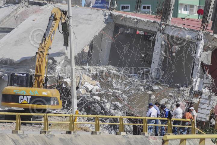 CHILPANCINGO, GUERRERO, 07MARZO2014.- Por estrategos de la tormenta Manuel el río Huacapa dejó inestable los cimientos de un edificio ubicado a las orillas del río. Por lo mismo el inmueble tuvo que ser demolido. FOTO: JOSÉ I. HERNÁNDEZ /CUARTOSCURO.COM