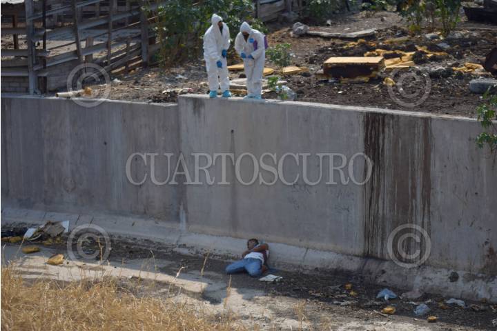 CHILPANCINGO, GUERRERO, 06JUNIO2024.- Un fue asesinado a balazos y abandonado dentro del encauzamiento del río Huacapa la mañana del jueves, entre la colonia Ampliación Valle Verde y el fraccionamiento Azteca, en el sector norte de la capital de Guerrero. Alrededor de las 07:00 horas se reportó al servicio de emergencias 911 el hallazgo de cuerpo de varón tirado en el interior del encausamiento, que al parecer no presentaba signos vitales. Al lugar arribaron elementos de la Secretaría de Seguridad Pública (SSP) estatal y también de la Fiscalía General del Estado (FGE) para acordonar el área, además corroboraron que el cuerpo presentaba impactos de arma de fuego. Los reportes policiacos indican que se trataba de un hombre de maniatado de aproximadamente 35 años, que vestía pantalón de mezclilla y una camiseta deportiva con la leyenda “Lakers”. Tras las diligencias de ley el cuerpo fue secado del encauzamiento y trasladado al Servicio Médico Forense (SEMEFO) en calidad desconocido. FOTO: DASSAEV TÉLLEZ ADAME/CUARTOSCURO.COM