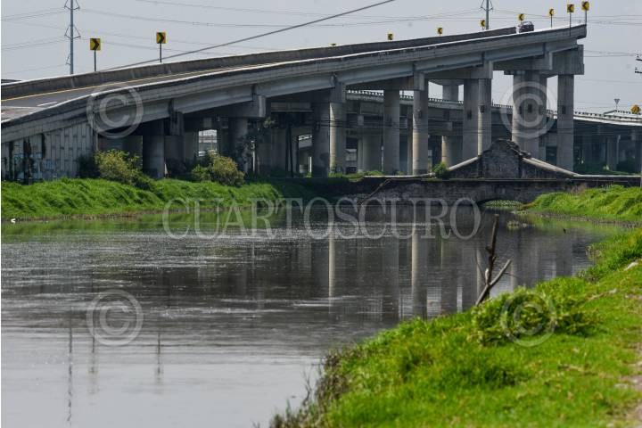 TOLUCA, ESTADO DE MÉXICO, 06FEBRERO2025.- En un tramo del río Lerma que pasa por la carretera Toluca-Temoaya se puede observar la acumulación de basura y sobre todo PET. FOTO: CRISANTA ESPINOSA AGUILAR /CUARTOSCURO.COM