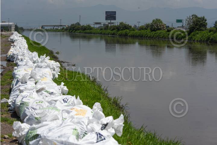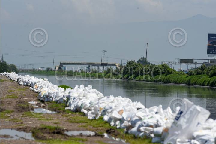 LERMA, ESTADO DE MÉXICO, 08AGOSTO2024.- Instalan costales de arena en las orillas del Río Lerma atrás de la zona industrial del municipio de Lerma, ante el crecimiento del cause de este afluente por las lluvias que se han presentado en los últimos días. FOTO: CRISANTA ESPINOSA AGUILAR /CUARTOSCURO.COM