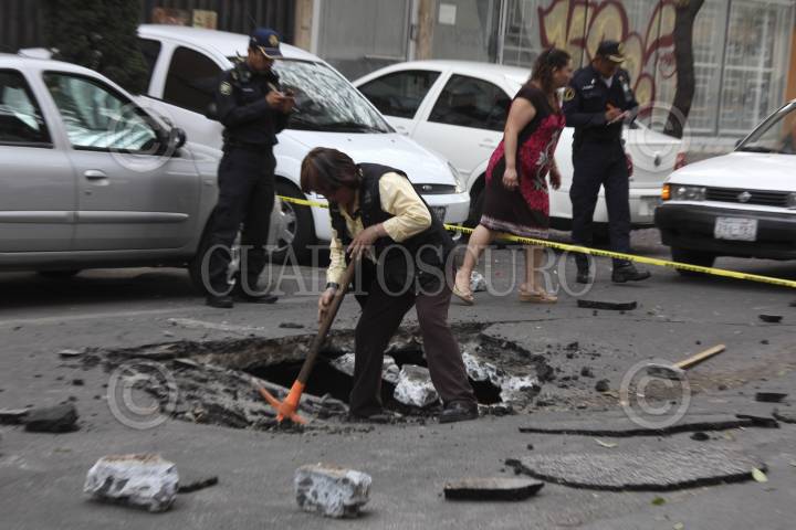 MÉXICO, D.F., 24MARZO214.- Personal de Protección Civil de la Delegación Cuauhtemoc, realiza trabajos de resguardo de un socavon que se registró en Rio Panuco entre Rio de la Plata y Circuito Interior. FOTO: SAÚL LÓPEZ /CUARTOSCURO.COM