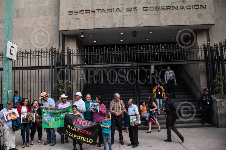 CIUDAD DE MÉXICO, 05MARZO2019.- Habitantes y representantes del pueblo Temacapulín ubicado en Jalisco, ofrecieron conferencia de prensa frente a las inmediaciones de la Secretaria de Gobernación (Segob), para anunciar los avances luego de una junta con integrantes de la SEGOB y Conagua. La organización pide la cancelación del megaproyecto de la presa Zapotillo, proyecto el cual una de sus afectaciones principales consiste en la inundación de los pueblos de Palmarejo, Acasico y Temaca. FOTO: ANDREA MURCIA /CUARTOSCURO.COM