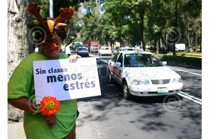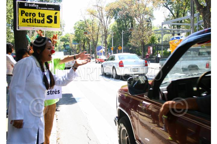 MÉXICO,D,F.,22SEPTIEMBRE2007.- Con buen humor integrantes de la organización risoterapia brindaron una dosis de risas a conductores que circulaban por avenida reforma y gandhi con el fin de que los automovilistas no toquen el claxon y sean amables con los peatones. FOTO:SASHENKA GUTIERREZ/CUARTOSCURO.COM