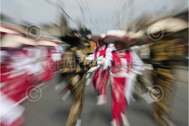 EDOMEX.CHIMALHUACÁN.11FEBRERO2008.- Con alegría, ritmo y colorido, charros y charras de diferentes comparsas recorren las calles del municipio para celebrar 107 años del Carnaval Sin Fronteras. FOTO: RICARDO CASTELÀN/CUARTOSCURO