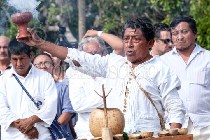 TULUM, QUINTANA ROO, 16DICIEMBRE2018.- Se realizó un ritual Maya por pedirle permiso a la madre tierra por la construcción del Tren Maya. FOTO: ELIZABETH RUIZ /CUARTOSCURO.COM
