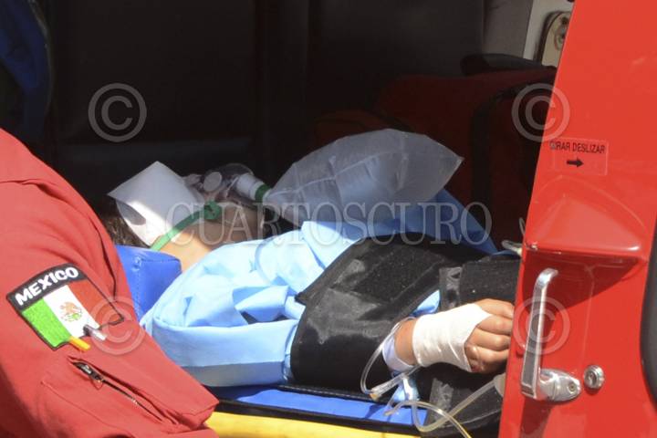MÉXICO, D.F., 24MAYO2012.- Un helicóptero del Estado de México traslado a un menor al cual su madre le saco los ojos en lo que parece fue un ritual satánico. La señora fue detenida por la policía municipal de Nezahualcóyotl y los hechos ocurrieron en la calle de Graciano Sánchez Mz 34 L 5, en la colonia San Agustín segunda sección del municipio de Nezahualcóyotl. FOTO: LUIS CARBAYO /CUARTOSCURO.COM