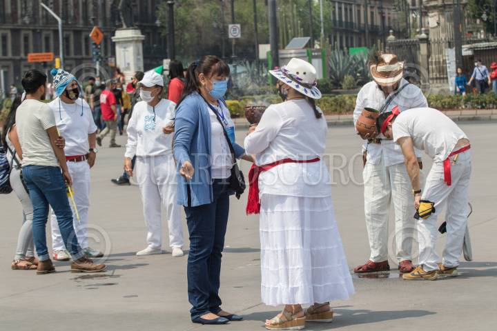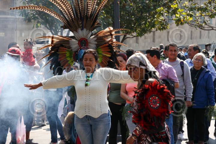Personas realizaron rituales prehispánicos en el zócalo para cargarse de energía positiva, hoy inició el equinoccio de primavera en el país.