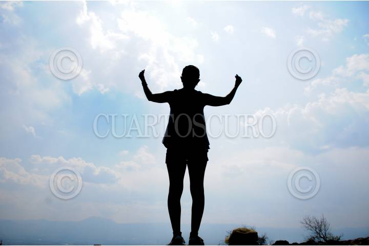 Una mujer estira sus brazos al cielo como ritual del inicio de la primavera.