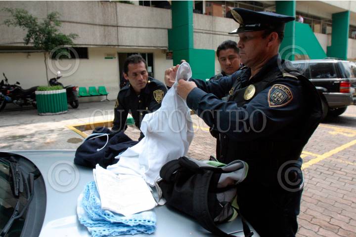 MÉXICO, D.F. 07SEPTIMEBRE2006.- En el interior de la Clínica 9 del IMSS, ubicada en Avenida Revolución y Calle 7, una mujer fue detenida por personal de intendencia, luego de que intentó robarle un niño a su madre. Sin embargo, los gritos de la víctima alertaron al personal de intendencia, que capturaron a la mujer y la entregaron a los policías del Sector B Juárez. La detenida se negó a dar su nombre, además tiene una bata de doctor o enfermera. FOTO: PEDRO MARRUFO/CUARTOSCURO.COM