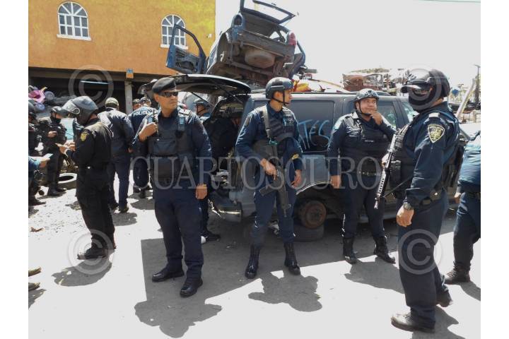 CIUDAD DE MÉXICO, 27JUNIO2019.- Personal de la Policía de Investigación y elementos de la SSC implementaron un operativo contra robo de autopartes en un predio, ubicado en la Avenida Benito Juárez, en la Colonia Polvorilla, alcaldía Iztapalapa. FOTO: CRISTIAN HERNÁNDEZ /CUARTOSCURO.COM