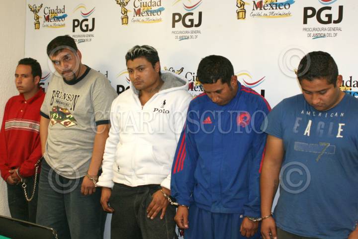 MÉXICO, D.F., 28FEBRERO2010.- un grupo de sujetos fueron presentados ante los medios de comunicación en las instalaciones de la PJGDF por su presunta responsabilidad en el delito de robo de vehículos los cuales después los desmantelaban para comercializar sus partes. FOTO: LUIS CARBAYO/CUARTOSCURO.COM