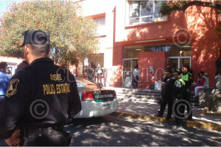 TEPETLAOXTOC, ESTADO DE MÉXICO, 27DICIEMBRE2009.- Ismael Rangel de 22 años y Carmelo Meneses de 21 fueron puestos a disposición ante el Ministerio Publico en la Sub Procuraduría del Municipio de Texcoco por elementos de la policía estatal después de haber sido detenidos y golpeados por pobladores del lugar cuando se les encontró robando cables de energía eléctrica de los postes, en el pueblo de San Pedro Chiahutzingo de este Municipio. FOTO: LUIS CARBAYO/CUARTOSCURO.COM