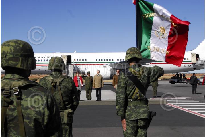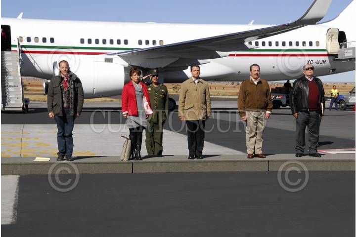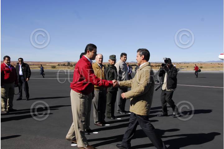 CALERA DE VICTOR ROSALES, ZACATECAS, 10ENERO2013.- Enrique Peña Nieto, presidente de México, acompañado de Rosario Robles, titular de SEDESOL, Roberto Miranda, jefe del Estado mayor Presidencial, Enrique Martínez y Martínez, titular de SAGARPA, David Korenfeld Federman, titular de CONAGUA y David López Gutiérrez, Director de Comunicación Social de la Presidencia de la República, a su llegada a la gira por el estado de Zacatecas. Los funcionarios fueron recibidos por el gobernador Miguel Alonso Reyes. FOTO: CUARTOSCURO.COM