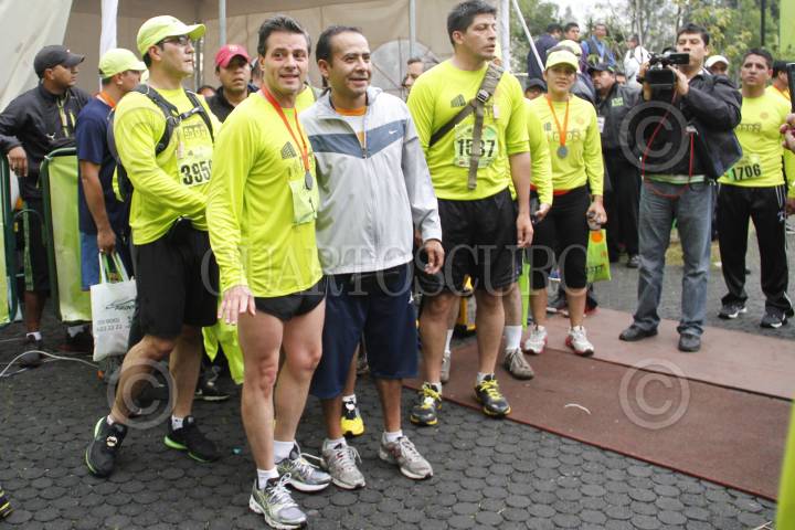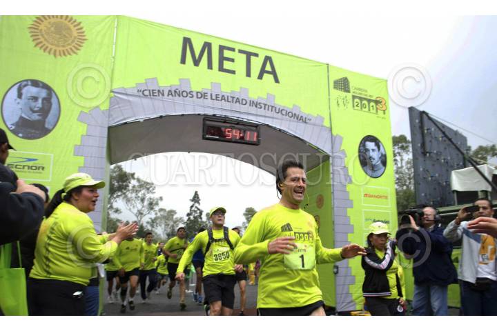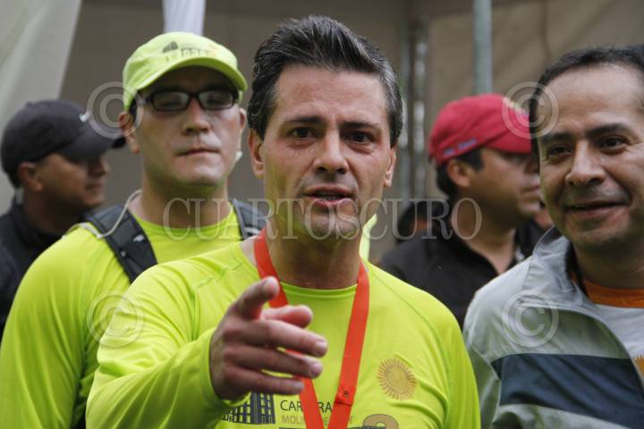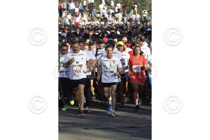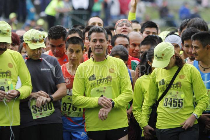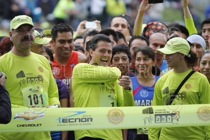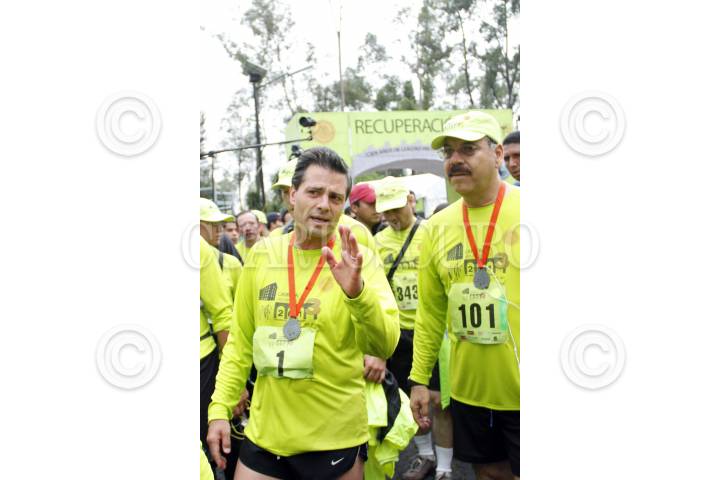 MÉXICO, D.F., 13JULIO2013.- En su participación en la Tercera Carrera “Molino del Rey”, organizada por el Estado Mayor Presidencial, el Presidente de la República, Enrique Peña Nieto, recorrió 10 kilómetros de la prueba que inició en la glorieta de “La Fuente de Tláloc” y abarcó partes de la Segunda Sección del Bosque de Chapultepec, el Lago y avenidas como Molino del Rey y Parque Lira. FOTO: PRESIDENCIA /CUARTOSCURO.COM
