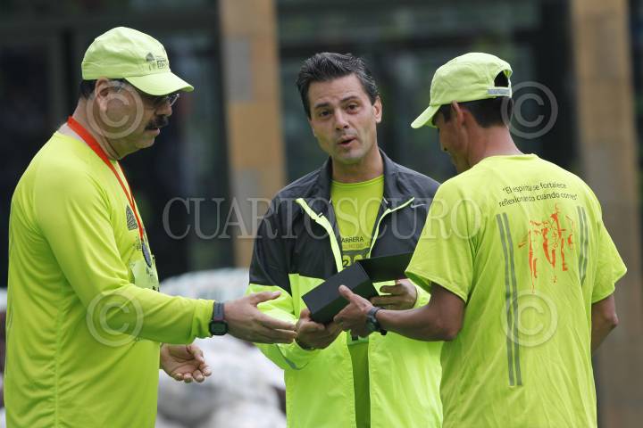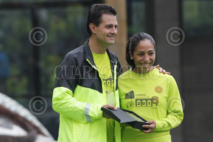 MÉXICO, D.F., 13JULIO2013.- Enrique Peña Nieto, Presidente de México, participó en la carrera Molina del Rey convocada por el Estado Mayor Presidencial, al finalizar el recorrido en Chapultepec el mandatario recibió una medalla que le fue entrega por Roberto Miranda Jefe del Estado Mayor Presidencial, además él entregó reconocimientos a los participantes. FOTO: MOISÉS PABLO /CUARTOSCURO.COM