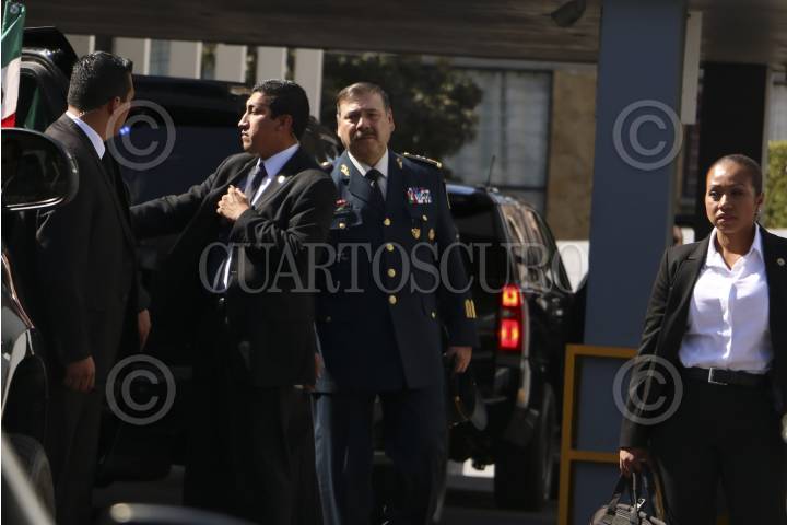 MÉXICO, D.F., 08ENERO2016.- Enrique Peña Nieto, Presidente de México asistió a dar el pésame a amigos y familiares de Joaquín Gamboa Pascoe, líder de la CTM, minutos antes el presidente twitteó la captura de Joaquín Guzmán Loera "El Chapo" en los Mochis Sinaloa. En la imagen Roberto Miranda, jefe del estado mayor presidencial. FOTO: SAÚL LÓPEZ /CUARTOSCURO.COM
