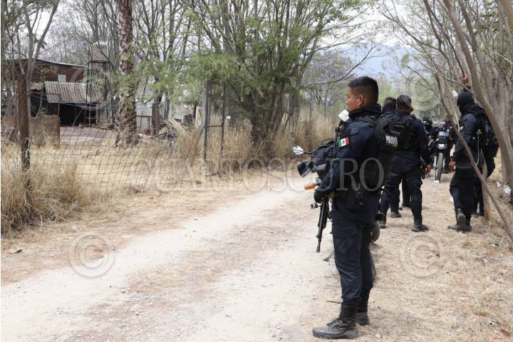 SANTA MARÍA EL TULE, OAXACA, 17ABRIL2025.- Desde la tarde de miércoles fue asegurado un predio a 300 metros de la Terminal de Almacenamiento y Despacho (TAD) de Petróleos Mexicanos (Pemex) en Santa María El Tule, municipio conurbado a la capital de Oaxaca, en donde presuntamente había una toma clandestina de hidrocarburo. En el operativo fueron detenidas tres personas del sexo masculino y una pipa para el transporte de combustible. Este día policías estatales mantienen la zona en resguardo y esperan el arribo de personal de la Procuraduría Federal de la República. FOTO: CAROLINA JIMÉNEZ MARISCAL/CUARTOSCURO.COM