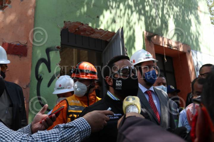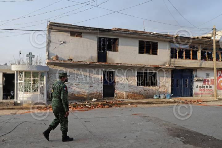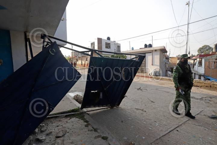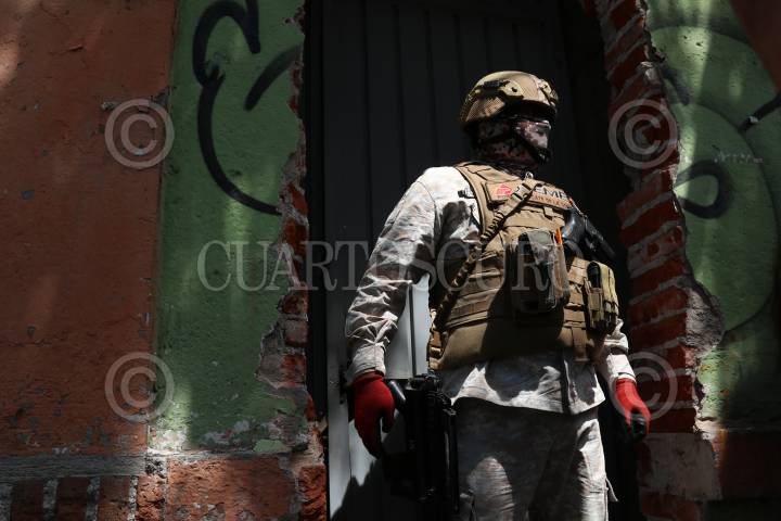 un elemento de Pemex resguarda la entrada el inmueble ubicado en Carrillo Puerto 165.
