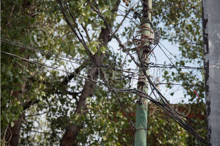 Cientos de cables (diablitos) se observan colgados de los postes de luz eléctrica, los cuales proveen de energía a los puestos informales de la avenida Santa María La Ribera.