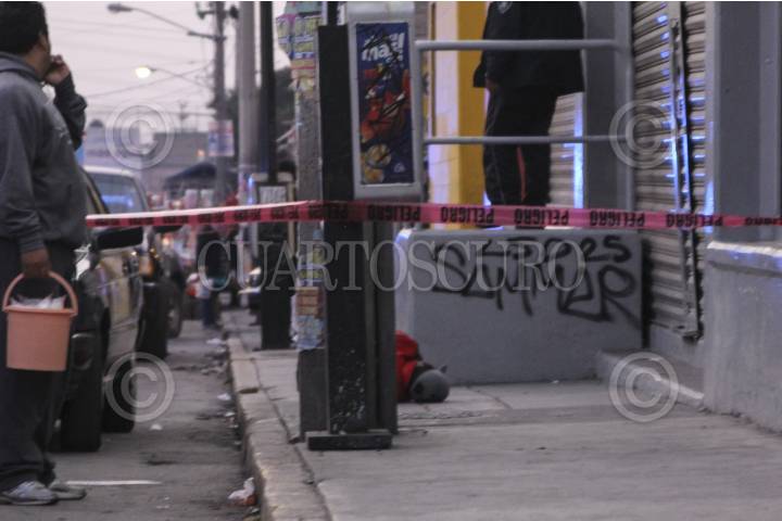 ECATEPEC, EDO. MEX., 21ENERO2015.- Policías Auxiliares del Distrito Federal abatieron a balazos a un presunto delincuente, cuando en compañía de dos cómplices mas intentaban asaltar la tienda departamental Elektra ubicada sobre la Avenida San Andres casi esquina con calle 3 Colonia Hank Gonzales, al percatarse de la presencia Policíaca los delincuentes dispararon en contra de los oficiales quienes respondieron la agresión, matando a un joven que se quería dar a la fuga abordo de una camioneta Ford Lobo color negra, los otros dos delincuentes lograron darse a la fuga. FOTO: DIEGO REYES /CUARTOSCURO.COM