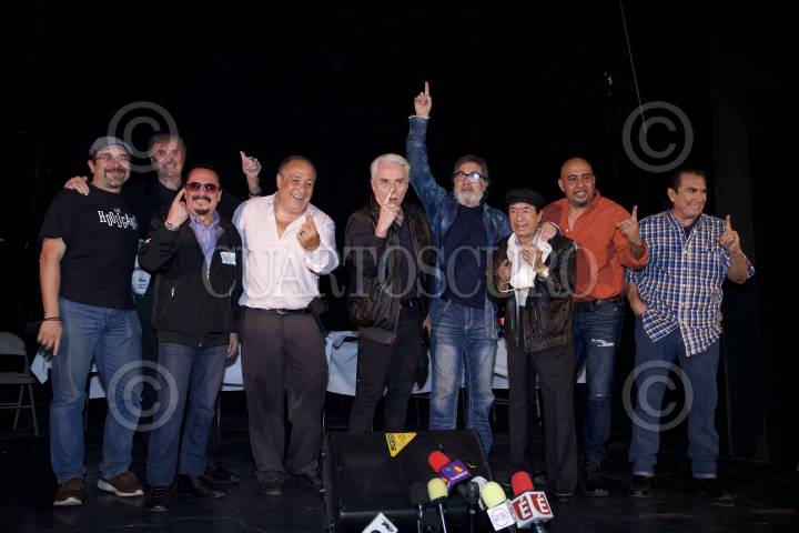 Conferencia de prensa con integrantes de las agrupaciones Los Locos de Ritmo, Los Hermanos Carrión, Los Rebeldes del Rock, Lo Hooligans y Los Rockin Devils que participarán en el concepto Chavos + Ruckos, evento realizado en el Teatro Ofelia.