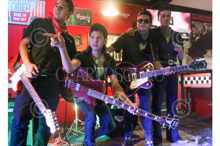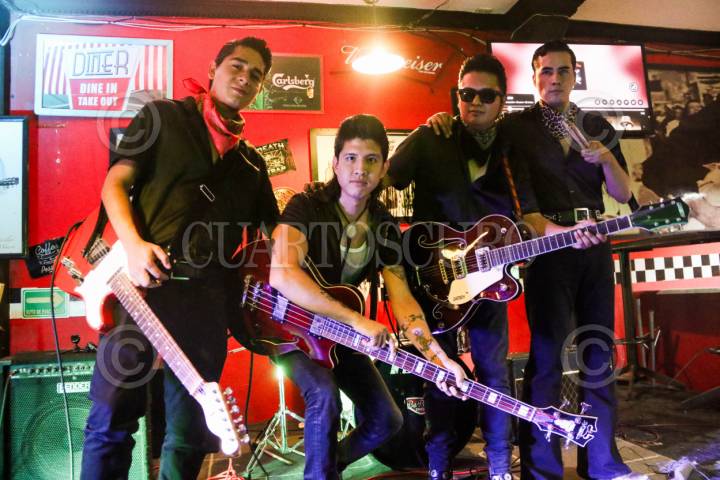 CIUDAD DE MÉXICO. 08MAYO2024.- Conferencia de prensa con la banda de Rockabilly "Los Tentación" en el Be Bops Diner, un bar que se encuentra en la calle de Medellin en la.colonia Roma de la alcaldía Cuauhtémoc. A Pesar de ser muy jóvenes dicen ser auténticos músicos de Rock and Roll. FOTO: VICTORIA VALTIERRA/CUARTOSCURO.COM