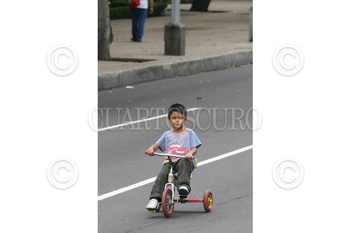 MÉXICO, D.F., 30AGOSTO2009.- Ua niño disfruta del Cicloton Familair que se realiza en un circuito que rodea toda la ciudad. FOTO: RODOLFO ANGULO/CUARTOSCURO.COM