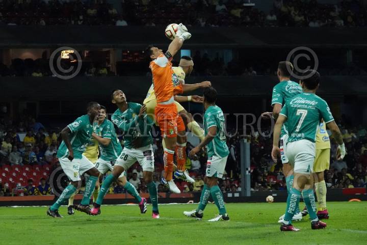 El portero de León Rodolfo Cota durante el partido de fútbol por el repechaje entre Cruz Azul vs León del Torneo Apertura 2022 de Liga BBVA MX, en el Estadio Azteca.