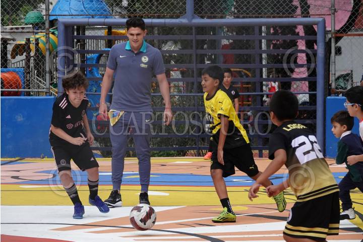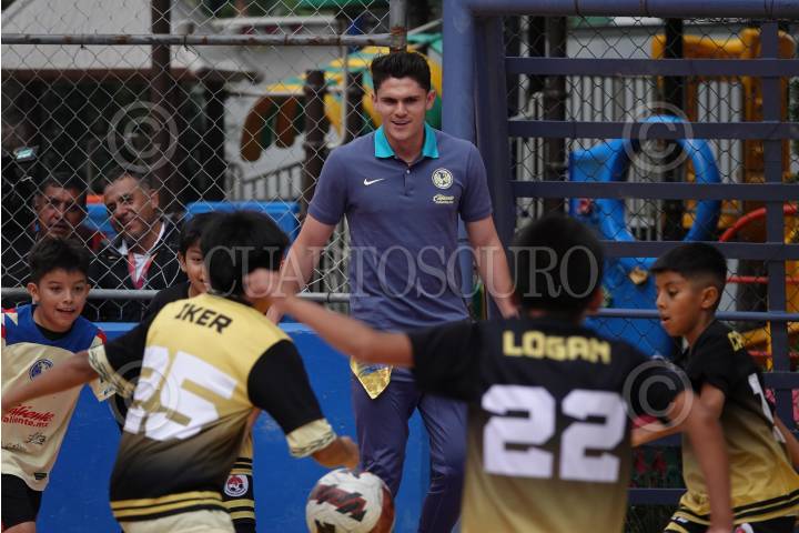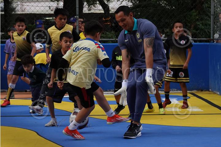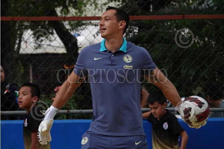 CIUDAD DE MÉXICO, 23JULIO2024.- El portero Rodolfo Cota y el lateral derecho Israel Reyes participaron en la inauguración de la Cancha Bicampeonato en el Parque Popular Cuatro Vientos. FOTO: GALO CAÑAS/CUARTOSCURO.COM