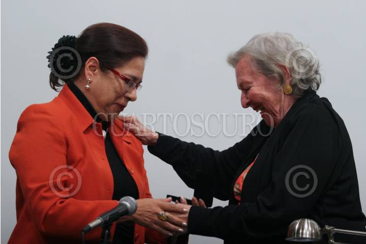MÉXICO D.F., 23ENERO2009.- Maria Teresa Franco, directora del Instituto Nacional de Bellas Artes entrego el día de ayer por la noche la medalla de Bellas Artes a Ida Rodrigez Prampolini, por su trayectoria como escritora y critica del arte, esto durante una ceremonia en el Palacio de Bellas Artes. FOTO: RICARDO CASTELAN/CUARTOSCURO.COM