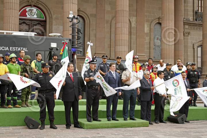 MONTERREY, NUEVO LEÓN, 20MARZO2013.- Autoridades Estatales y Municipales arrancaron el Operativo Semana Santa 2013 que se extenderá hasta el próximo ocho de abril, en donde 3 mil elementos de las diferentes corporaciones trabajarán en conjunto para la seguridad del área metropolitana, tales como Fuerza Civil, Protección Civil del Estado, Elementos de vialidad y tránsito, Cruz Roja, Cruz Verde, entre otros. El gobernador del Estado Rodrigo Medina presidió el banderazo de inicio. FOTO: GABRIELA PÉREZ MONTIEL / CUARTOSCURO.COM