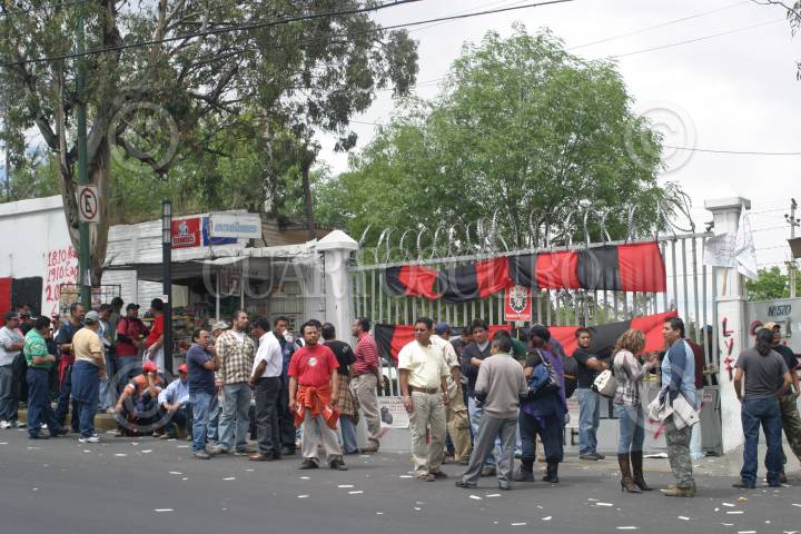 MÉXICO, D.F., 16MARZO2010.- Integrantes y simpatizantes del Sindicato Mexicano de Electricistas (SME), colocaron banderas rojinegras en instalaciones y subestaciones donde operaba la extinta Luz y Fuerza del Centro (LyFC), esto como parte del plantón que mantendrán en la ex paraestatal. En la imagen el campamento Belen de las Flores ubicado en la avenida Camino Real a Toluca, delegación Álvaro Obregón. FOTO: MISAEL VALTIERRA/CUARTOSCURO.COM