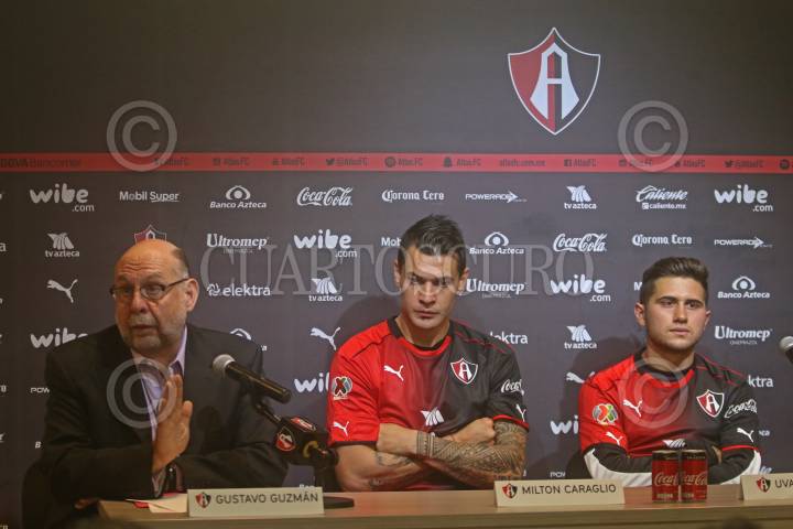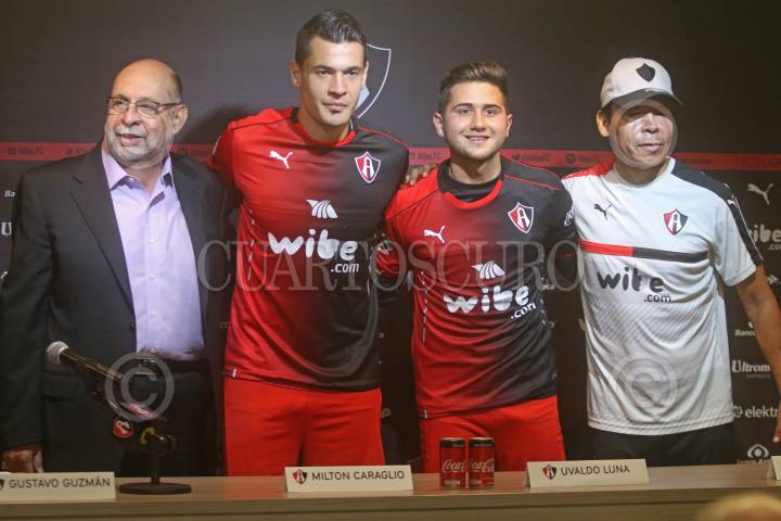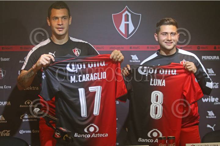 ZAPOPAN, JALISCO. 15JUNIO2017.- Milton Caraglio y Uvaldo Luna fueron presentados como nuevos refuerzos de los Zorros del Atlas, para el próximo Torneo Apertura 2017 de la Liga MX, dicha presentación se llevo a cabo en las instalaciones de la Madriguera Rojinegra del Club Atlas en el Briseño. FOTO: FERNANDO CARRANZA GARCIA / CUARTOSCURO.COM