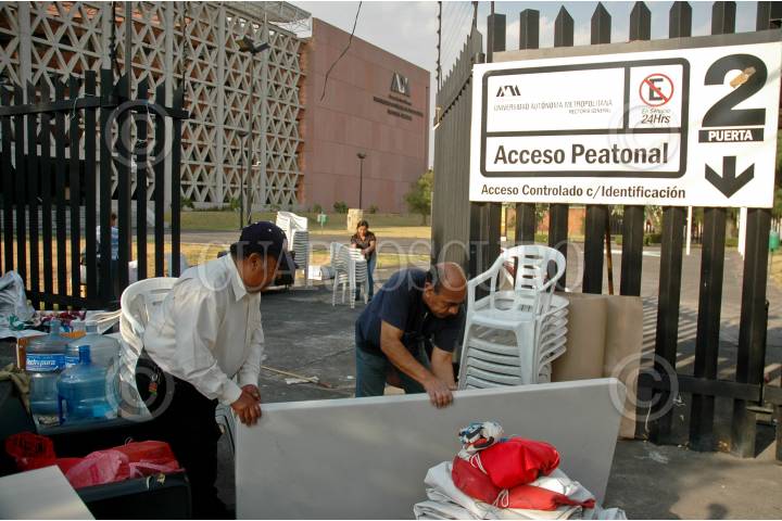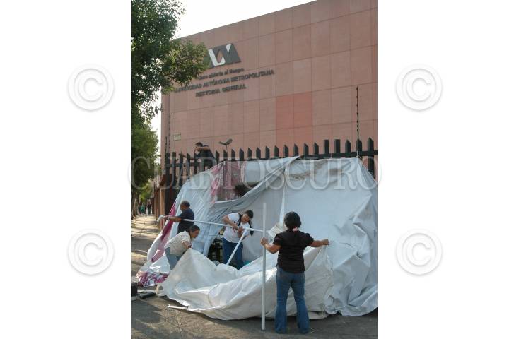 MÉXICO D.F., 05ABRIL2008.- Trabajadores de la Rectoria General de la Universidad Autónoma Metropolitana (UAM) retiran su campamento en donde permanecieron en huelga por 63 días después de haber llegado a un acuerdo autoridades de la universidad y autoridades sindicales. FOTO: RODOLFO ANGULO/CUARTOSCURO.COM
