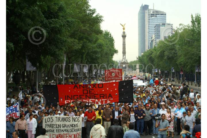 MÉXICO D.F. 21MAYO2007.- Sindicatos Universitarios encabezados por Agustin Rodriguez Fuentes lider del STUNAM marcharon del angel de la independencia al zocalo en protesta a las reformas de la ley del ISSSTE. FOTO: HUGO CRUZ/CUARTOSCURO.COM