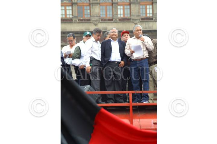 MÉXICO D.F. 21MAYO2007.- Agustin Rodriguez Fuentes lider del STUNAM presencia el mitin que se llevo a cabo en el zocalo al termino de la marcha contra le ley del ISSSTE. FOTO: HUGO CRUZ/CUARTOSCURO.COM